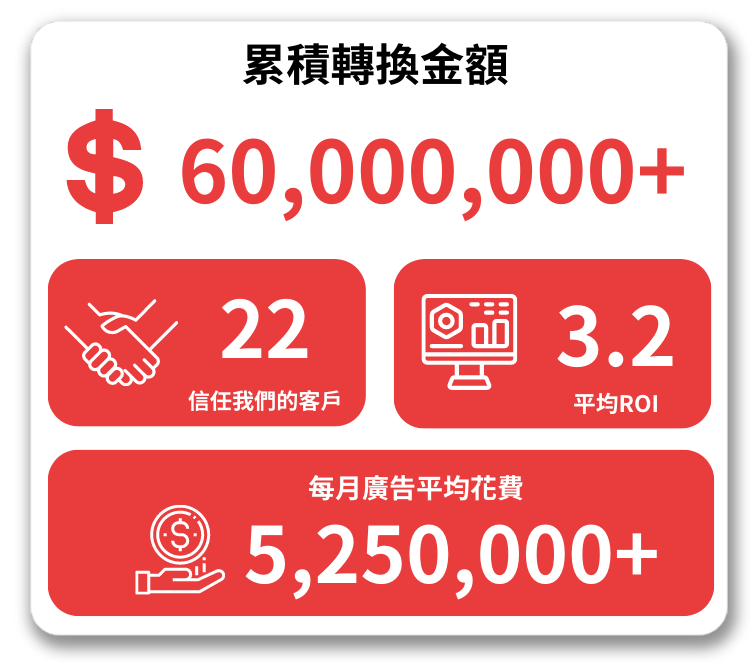 與我們合作,您可以確定一件事:我們將以您的品牌和產品為目標,實現最高的廣告支出回報率(ROAS)。