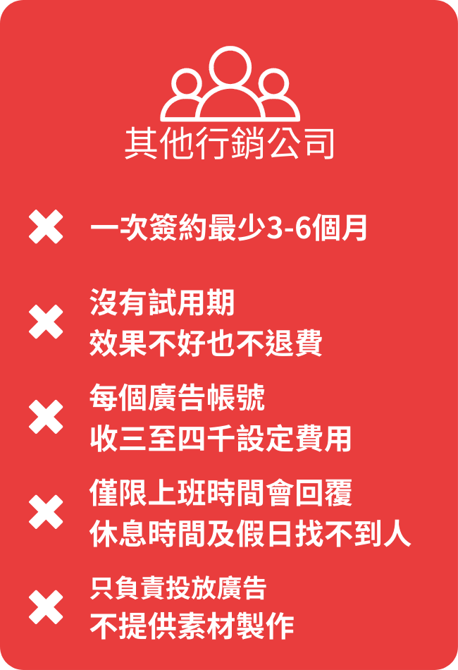 我們也會坦率地與您交流。如果我們認為您的品牌和產品無法通過廣告轉化,實現幫您賺到更多錢的目標,我們會在我們的首次會議的第一分鐘告訴您。